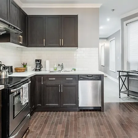 تشتمل مرافق الخدمة الذاتية على المطبخ كامل التجهيز الذي يتميز بالمايكرويف والغلاية الكهربائية والبرَّاد، بالإضافة إلى معدات صنع القهوة والشاي. يقع مطار بيلي بيشوب تورنتو سيتي على بعد 10 دقائق بالسيارة، وتقع محطة حافلات Dundas Street West قريب إلى حد ما من مكان الإقامة بمساحة 74 مترًا مربعًا.